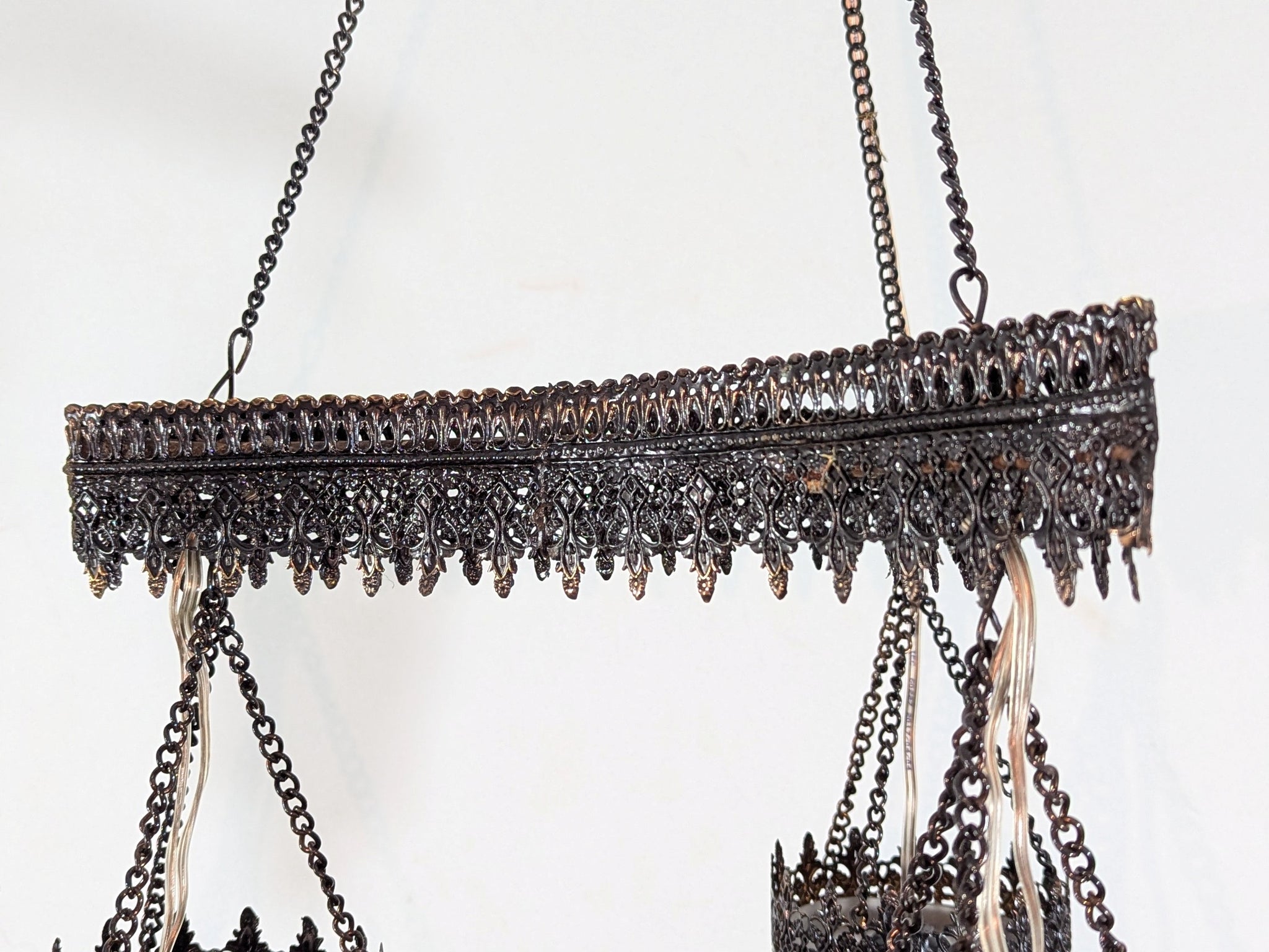 • Trim: Finely ornamented metal belts (filigree) around each shade