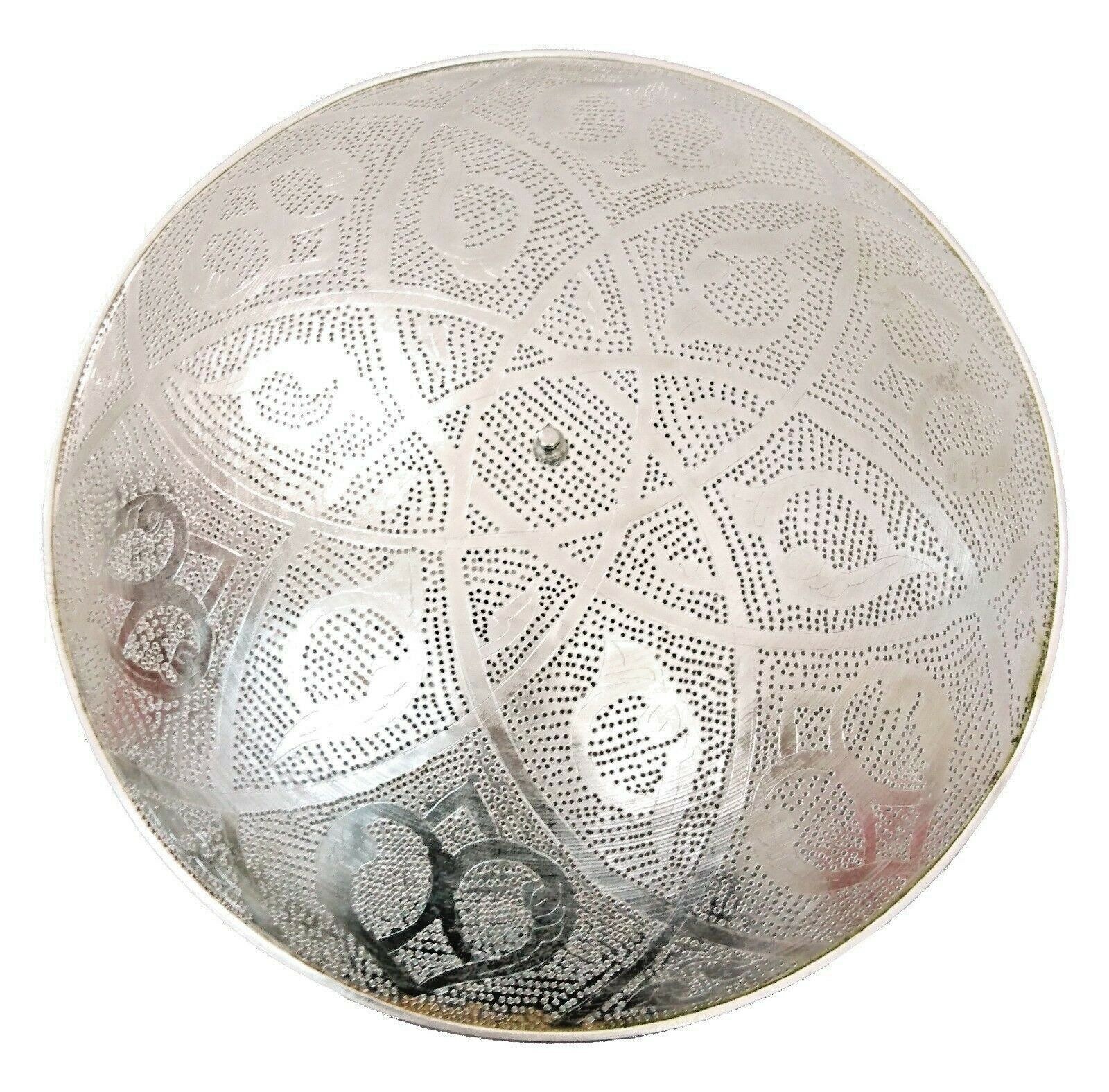 Elevate your space with the Circle Round steel Moroccan Silver Ceiling Light, a stunning fixture that harmonizes traditional Moroccan style with modern LED technology. Its flush mount design ensures a sleek and seamless appearance, making it a perfect choice for any indoor setting. The round shade, crafted from high-quality steel, diffuses light to create a warm and inviting atmosphere. This electric-powered ceiling light boasts a luxurious silver color that complements a variety of decor themes. With its elegant silhouette and efficient LED lighting, it provides both style and functionality for your home or office. The is a testament to exquisite craftsmanship, proudly manufactured in Egypt.